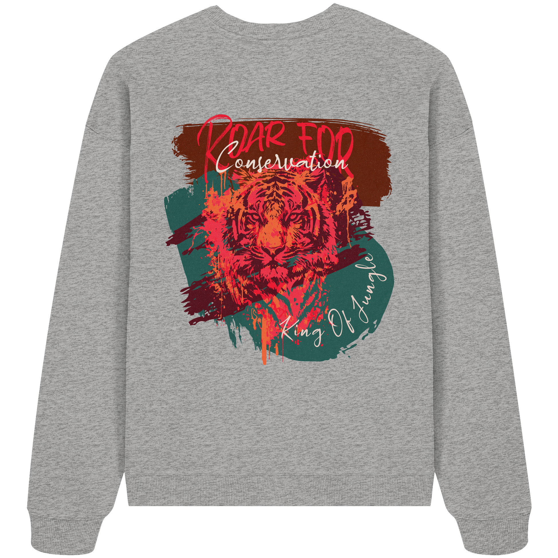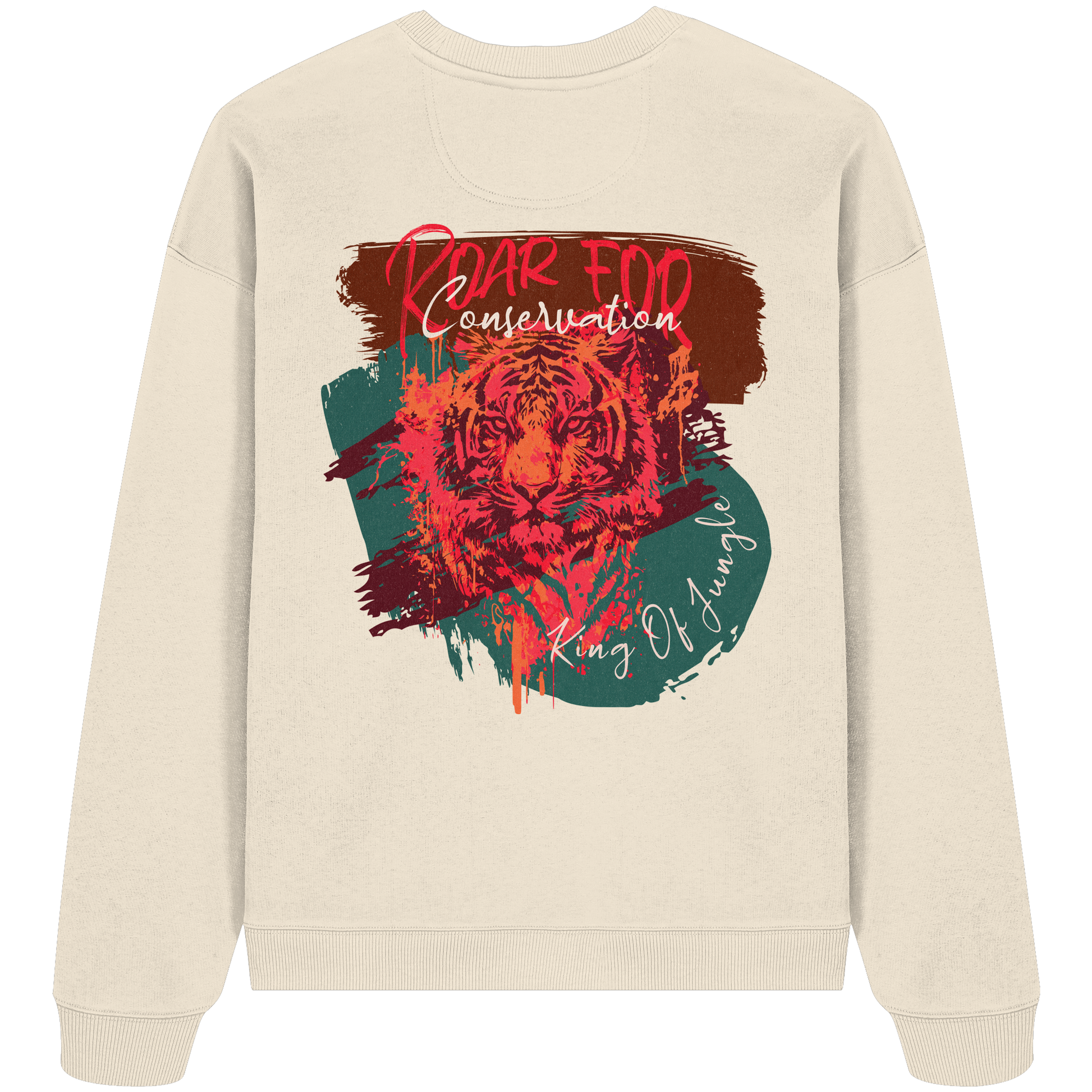 Der auffällige Tiger in kräftigen Orange- und Grüntönen setzt ein mutiges Zeichen. Die Worte "Roar for Conservation" und "King Of Jungle" unterstreichen die Botschaft.