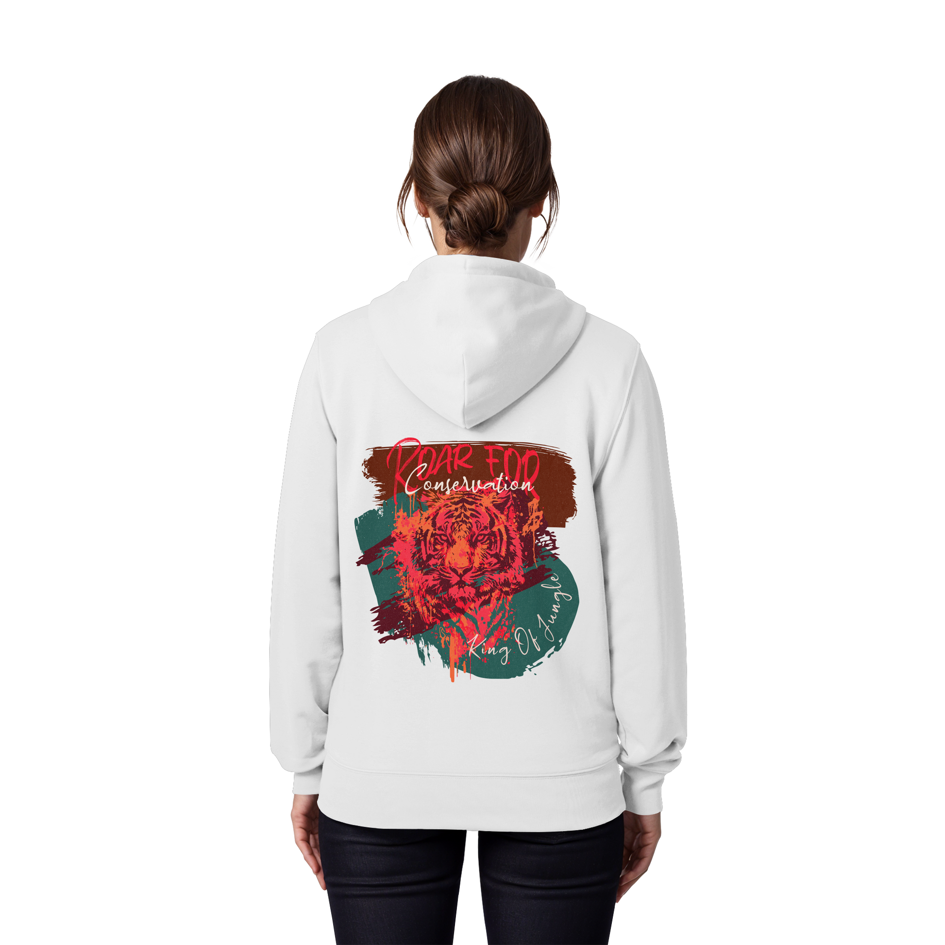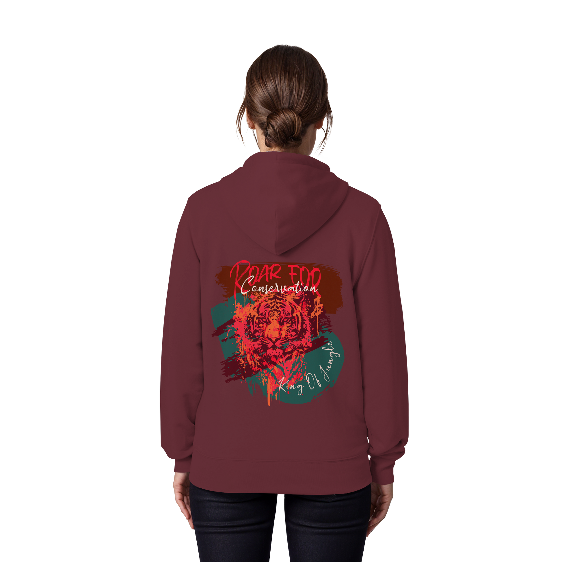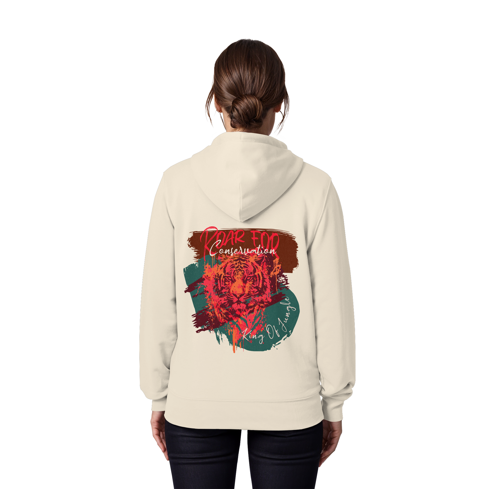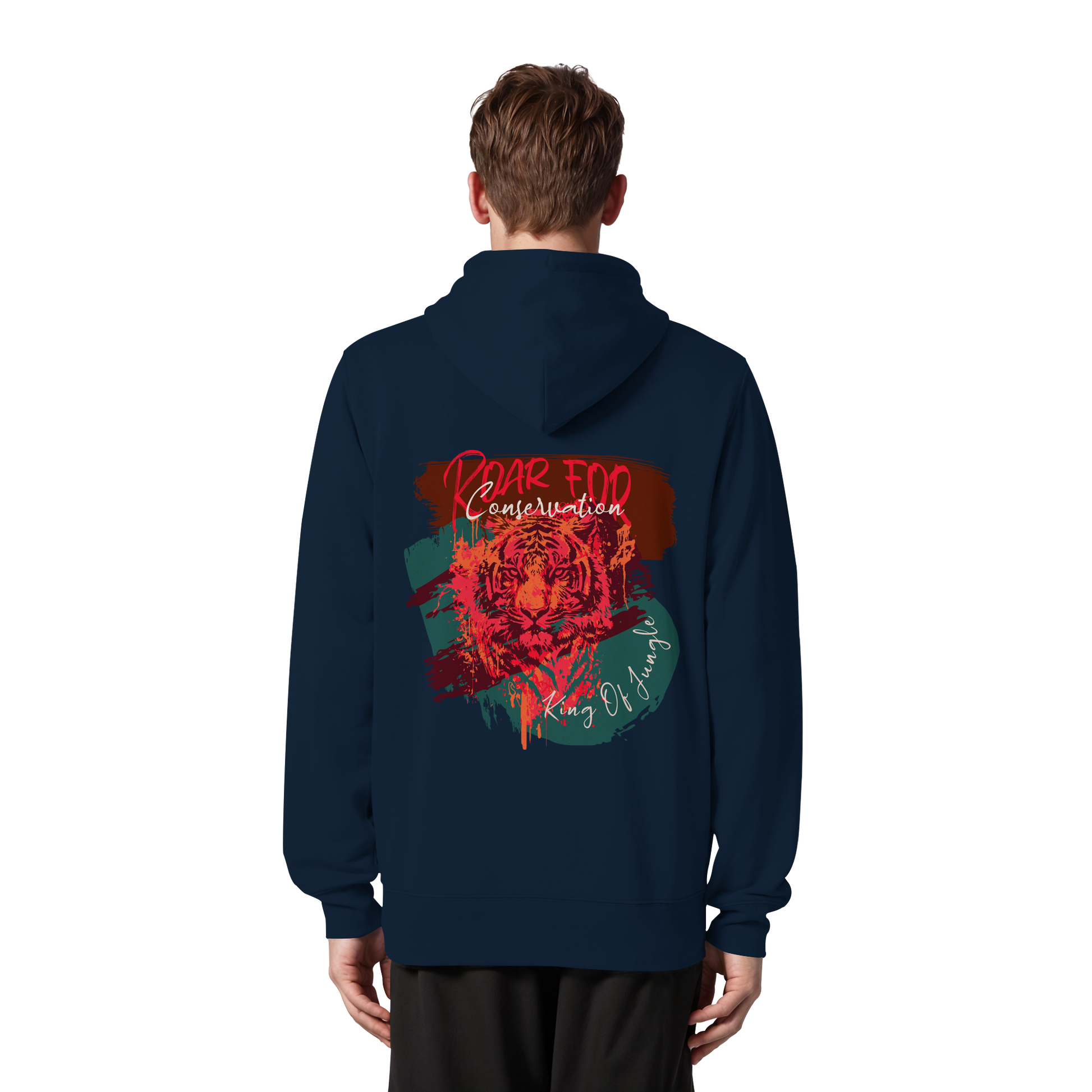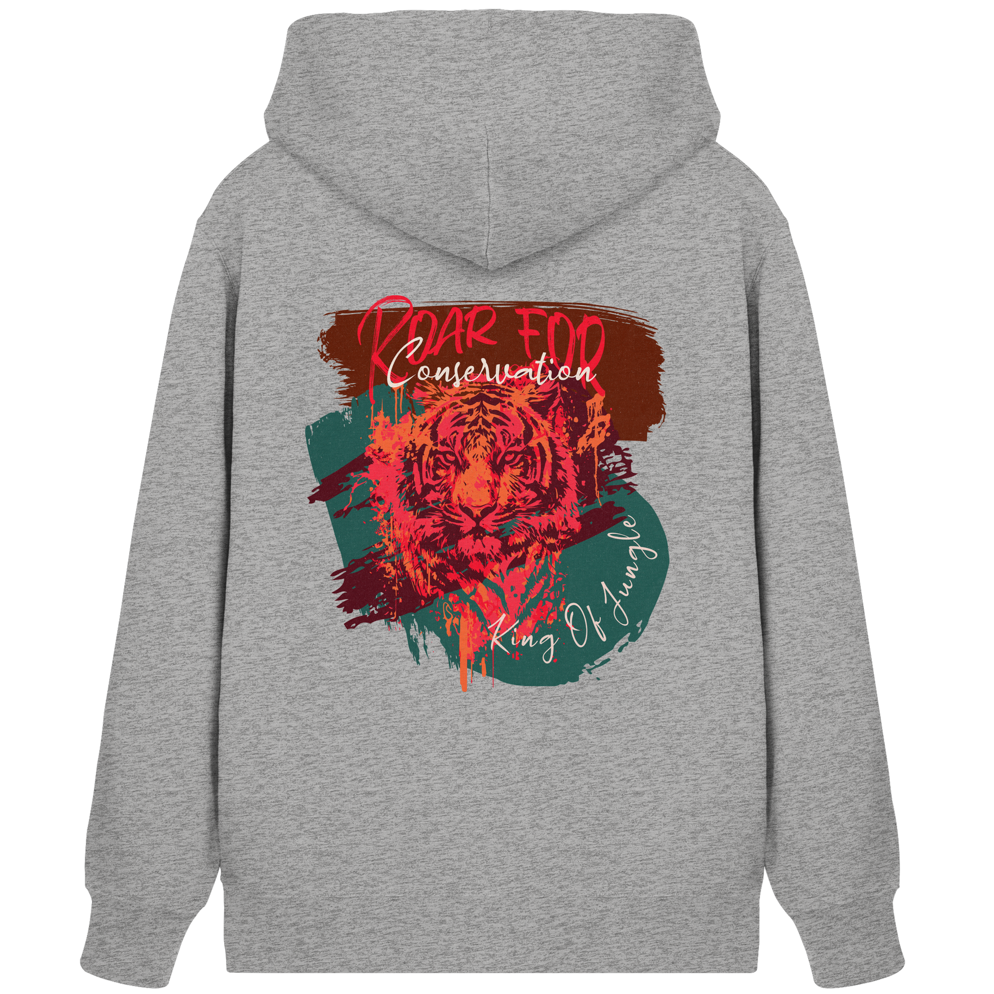 Erwecke den König der Wildnis in dir mit unserem "King Of Jungle Candy - Organic Zipper Sweatshirt". Dieses Kleidungsstück ist mehr als nur Mode; es ist ein Zeichen deiner Werte und deiner Leidenschaft für den Wildtierschutz. Mit einem kraftvollen Tigerdesign und der Botschaft "Road For Conservation" setzt es ein starkes Statement.