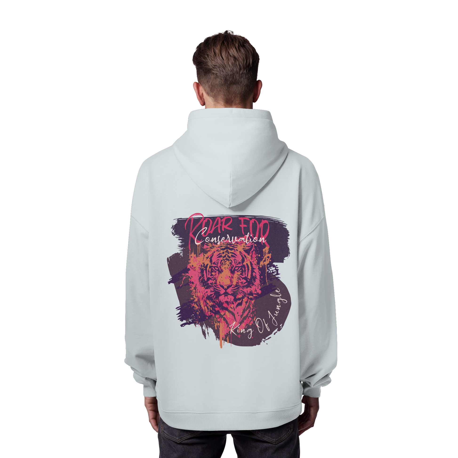 Erlebe das Gefühl, Teil einer Bewegung zu sein. Unser "King of Jungle" Organic Oversize Hoodie verkörpert nicht nur Stil, sondern auch eine starke Botschaft für den Wildtierschutz.