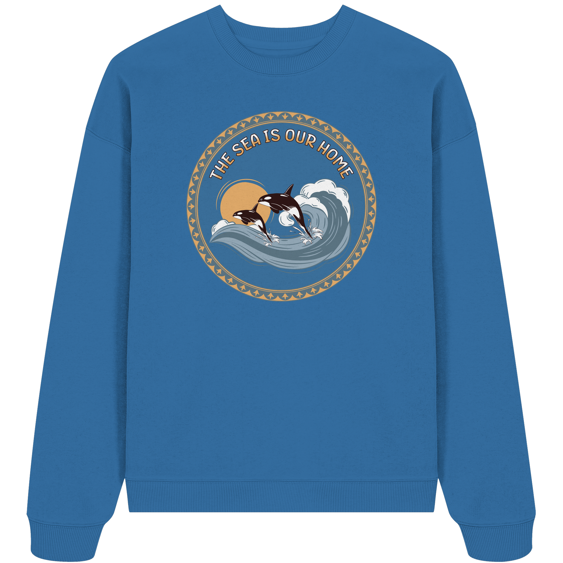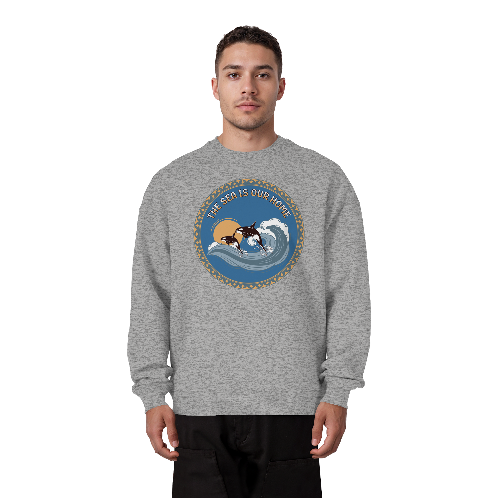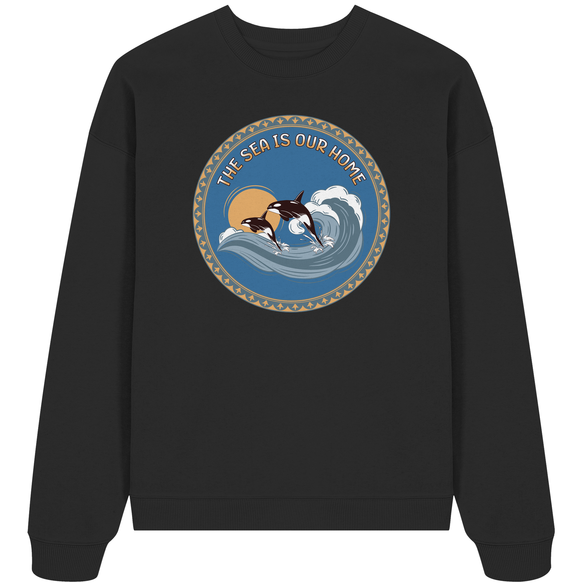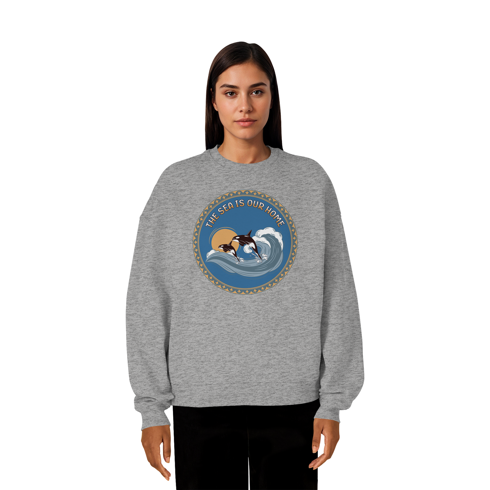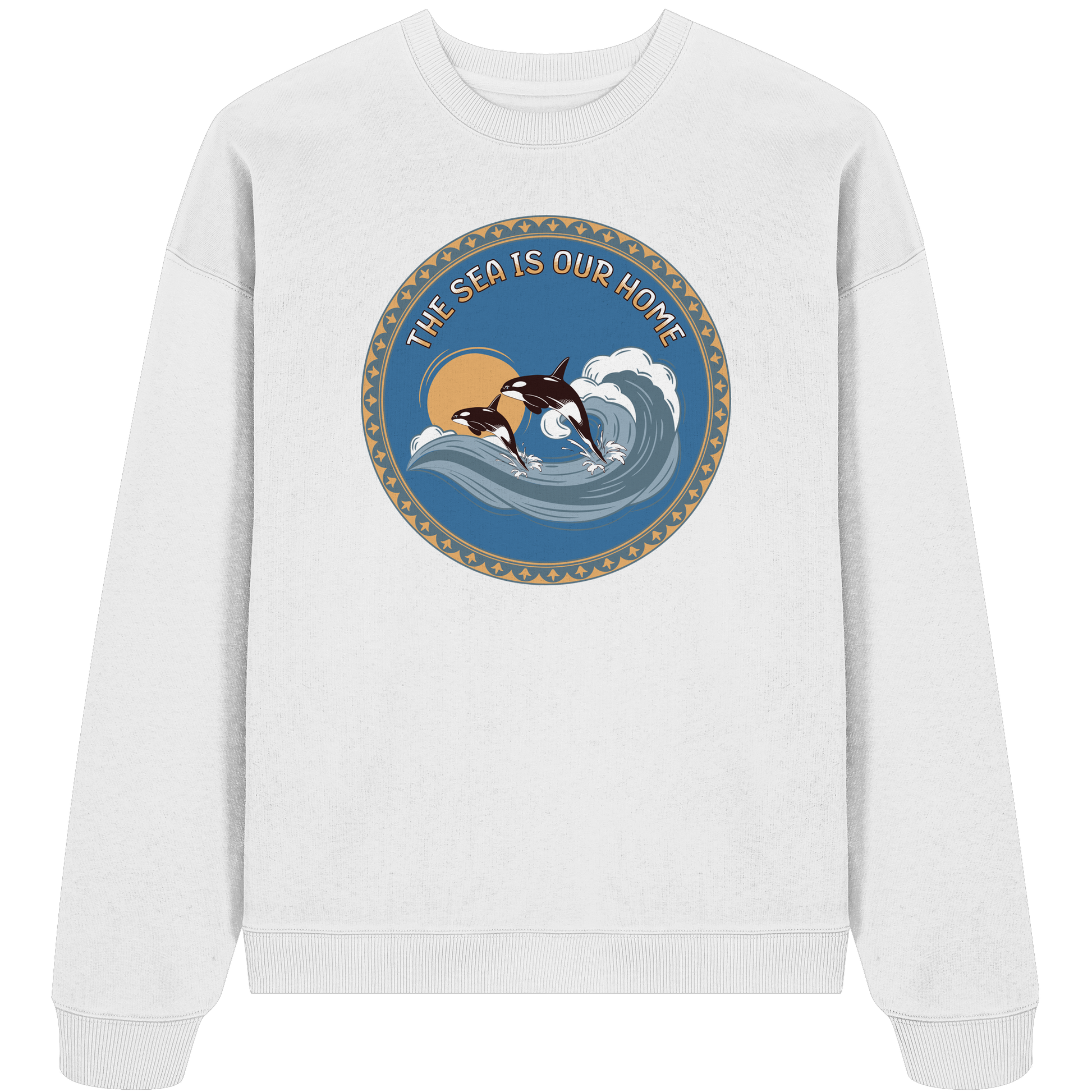 Erleben Sie die Kraft und Freiheit der Natur mit unserem Orca - Organic Oversize Sweatshirt. Inspiriert von der majestätischen Schönheit der Orcas, die durch kraftvolle Wellen brechen, verbindet dieses Design Stil und Naturverbundenheit.