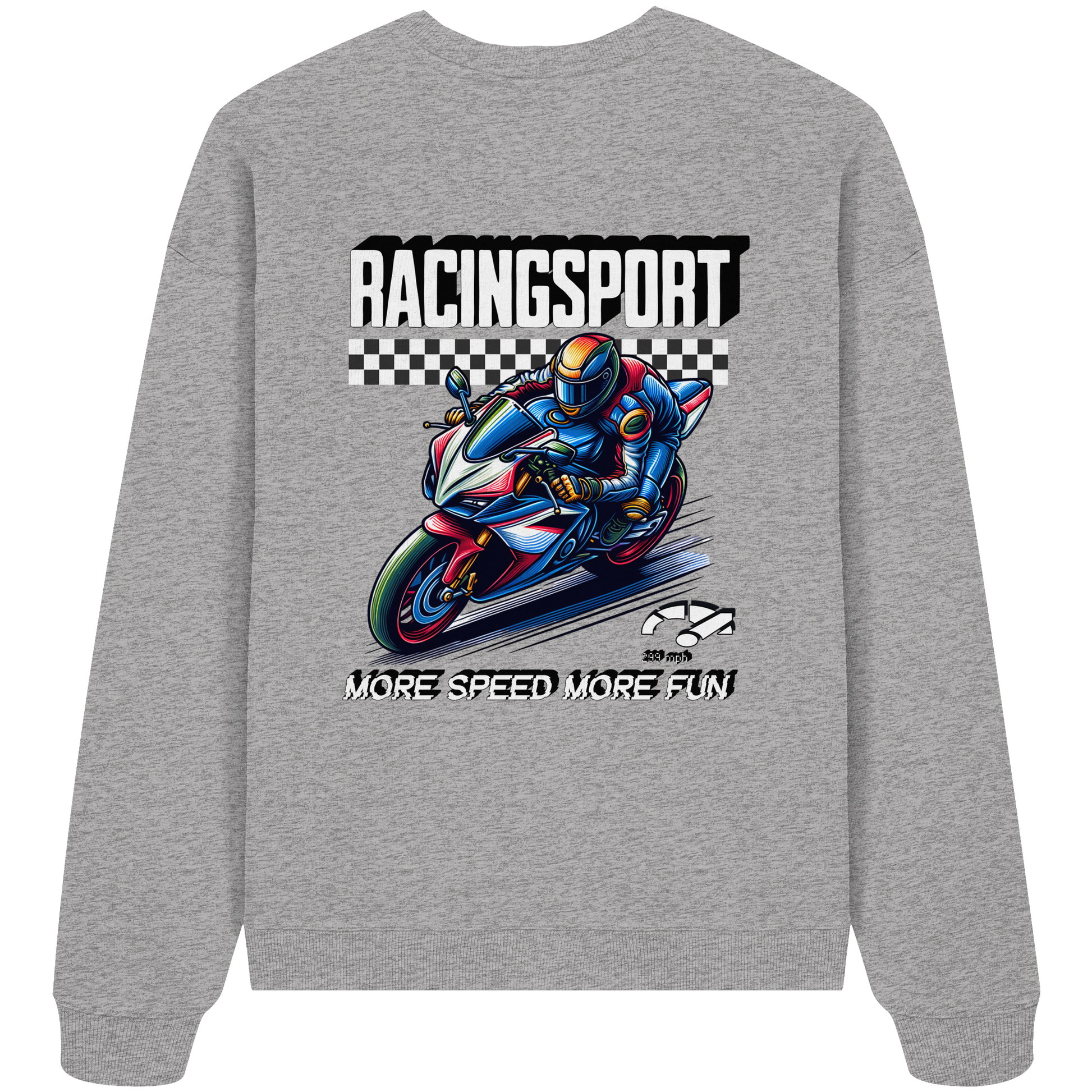 Erlebe die Freiheit und Geschwindigkeit des Rennsports mit unserem Racingsport - Organic Oversize Sweatshirt. Dieses Kleidungsstück fängt die Essenz des Motorradrennens ein und lässt dich deine Leidenschaft mit Stil ausdrücken.